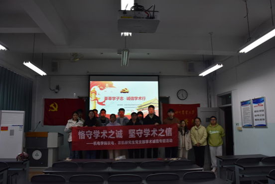 为进一步加学风建设和学术诚信教育,引导师生强化诚信意识、规范学术行为、维护学术道德,太阳网集团tcy8722农电、农机研究生党支部于12月3日联合举办“恪守科研诚信,坚守学术信仰”主题党日活动,旨在营造清新正直的学术环境,促进公司科研和学术研究的健康发展。