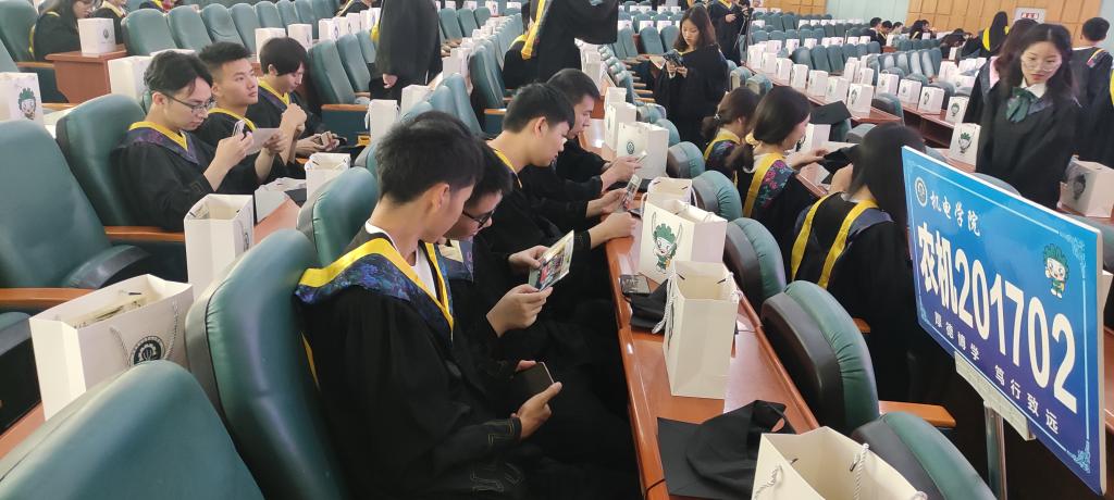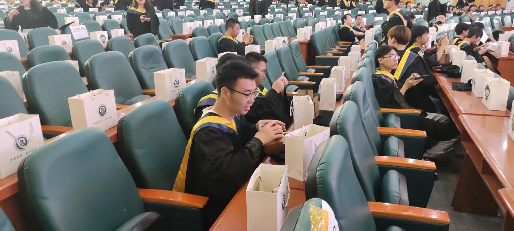 为了使此次毕业纪念品的发放更具有仪式感,机电团委老师及员工会成员特别设计了在授位仪式之前,提前将纪念品放在每个座位上的小心思,为机电毕业学子更增添了一份来自于毕业纪念礼物的惊喜。