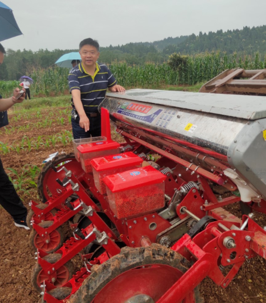 6月8日,公司副经理张黎骅教授、农机系吕小荣教授等参加了由公司与遂宁农业农村局联合承办的玉米-大豆带状复合种植技术培训及大豆机播现场观摩会。来自全省相关市县的农技干部及种植户共计100余人参加会议。