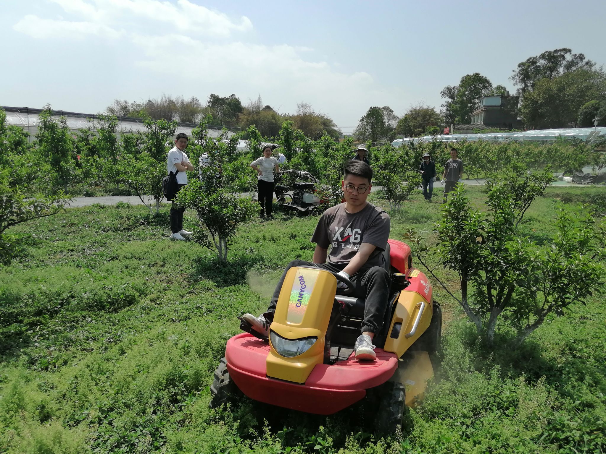为了进一步推进成都天府新区果园机械化进程,公司智能农机装备团队成员陈霖教授带领太阳网集团tcy8722师生一行人,协同四川耀农农业装备有限公司相关人员,于4月15日,在天府新区见山农场对果园除草机、打药机、碎枝机和打坑机进行了作业示范和选型实验。