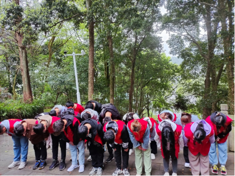 4月5日上午,天空下着毛毛细雨,但并不能阻止同学们参加活动的热情,同学们带着自己亲手制作的纸花前往公司附近的天全烈士陵园瞻仰在天全白土坎牺牲的红四方面军烈士。前来瞻仰烈士的人很多,经过排队等待,最终同学们在人民革命烈士纪念碑前献上了自己制作的纸花并且鞠躬悼念为国捐躯的烈士先辈们。