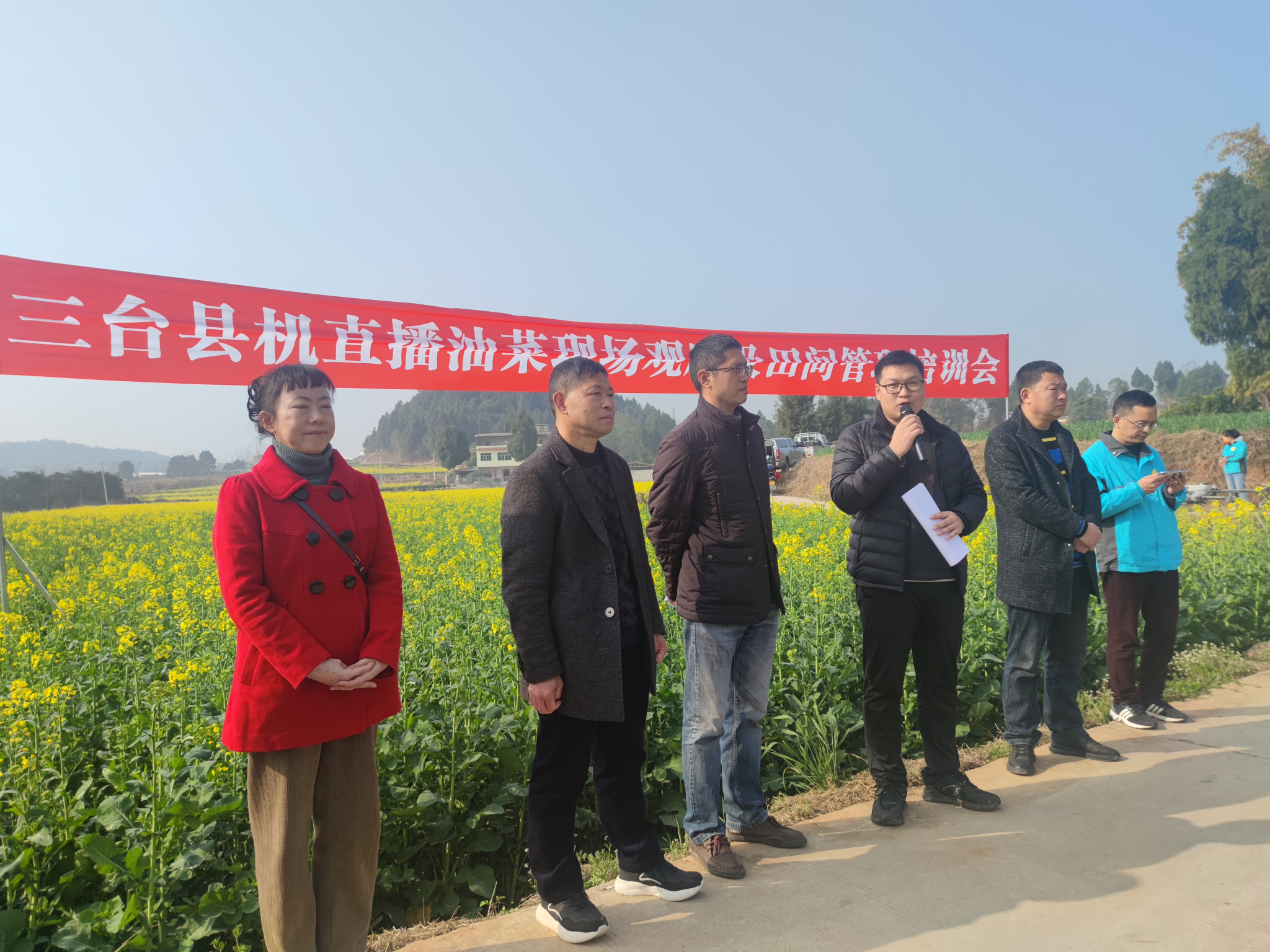 3月3日,公司农公司吴永成教授、周伟博士和太阳网集团tcy8722雷小龙副教授参加了“三台县机直播油菜现场观摩及田间管理培训会”,观摩了公司在三台县建平镇龙王塘村建设的油菜全程机械化示范基地。培训会由三台县农业农村局刘圣繁副局长主持,来自三台县农业农村局、各乡镇农业服务中心、种植大户与专业合作社、绵阳市农科院油菜所、台沃生态农业公司等单位的参会人员约80人。