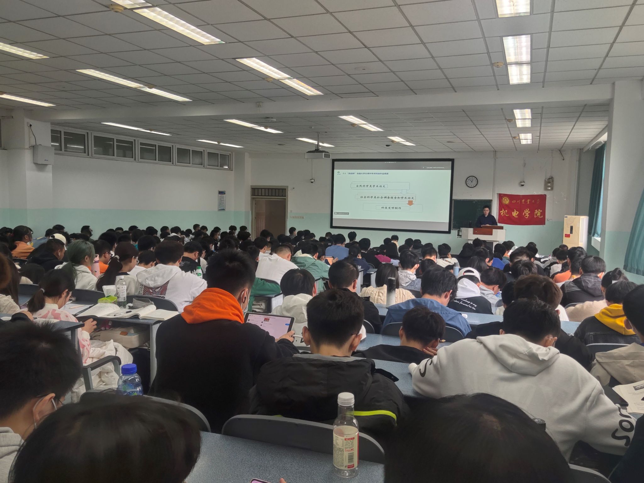 黄锎靓老师从参加双创项目的意义讲起,详细介绍了双创项目的多种形式与种类、赛事的安排以及参赛规则和方式方法,鼓励同学们不仅要注重学习成绩,还要通过参加创新创业提升专业素养,为解决国家的科技难题贡献出自己的一份力量。