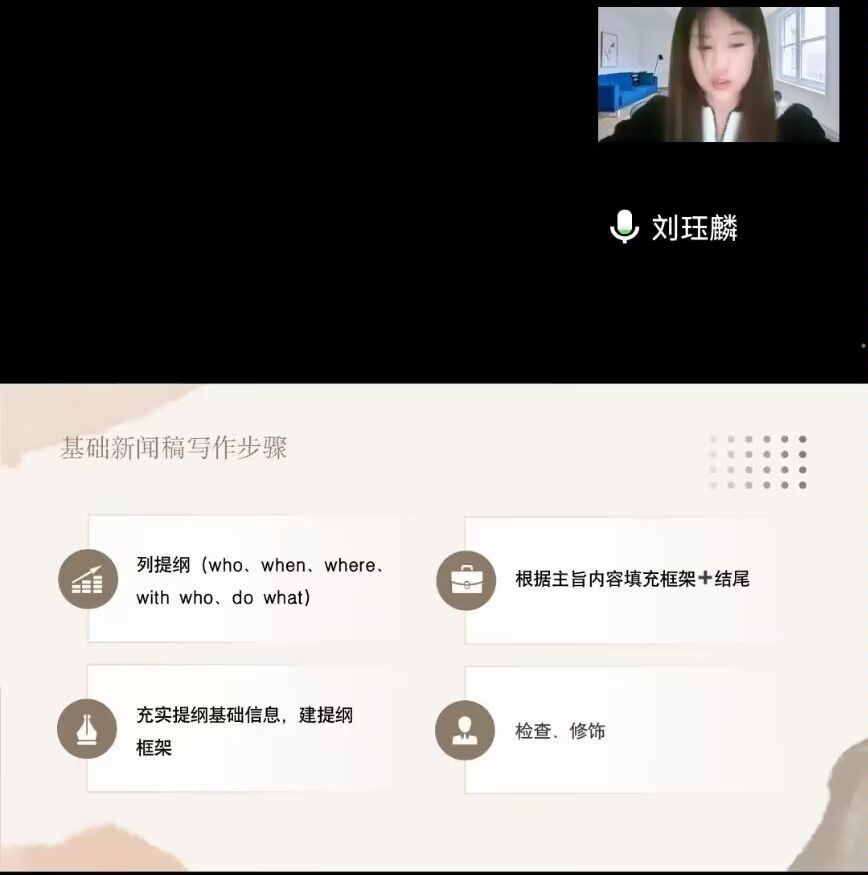 刘珏麟老师通过新闻稿的实例分析,讲述了如何写出高质量新闻稿,为同学们分享了快速准确写好新闻稿的方法。这些方法不仅可以帮助员工干部在未来的员工工作中提高效率,提升自己的工作能力,还可以培养大家做事的条理性和全面性。