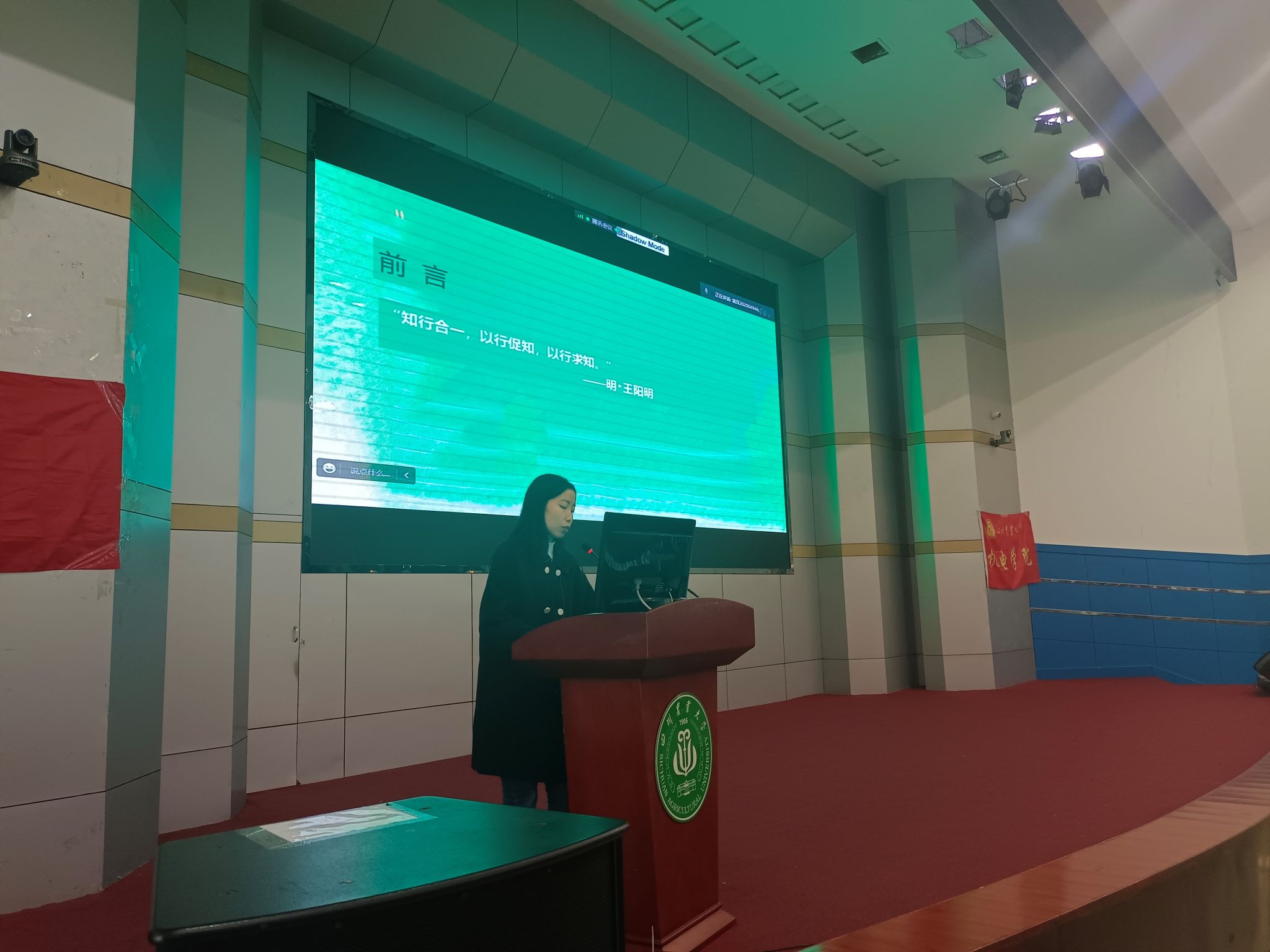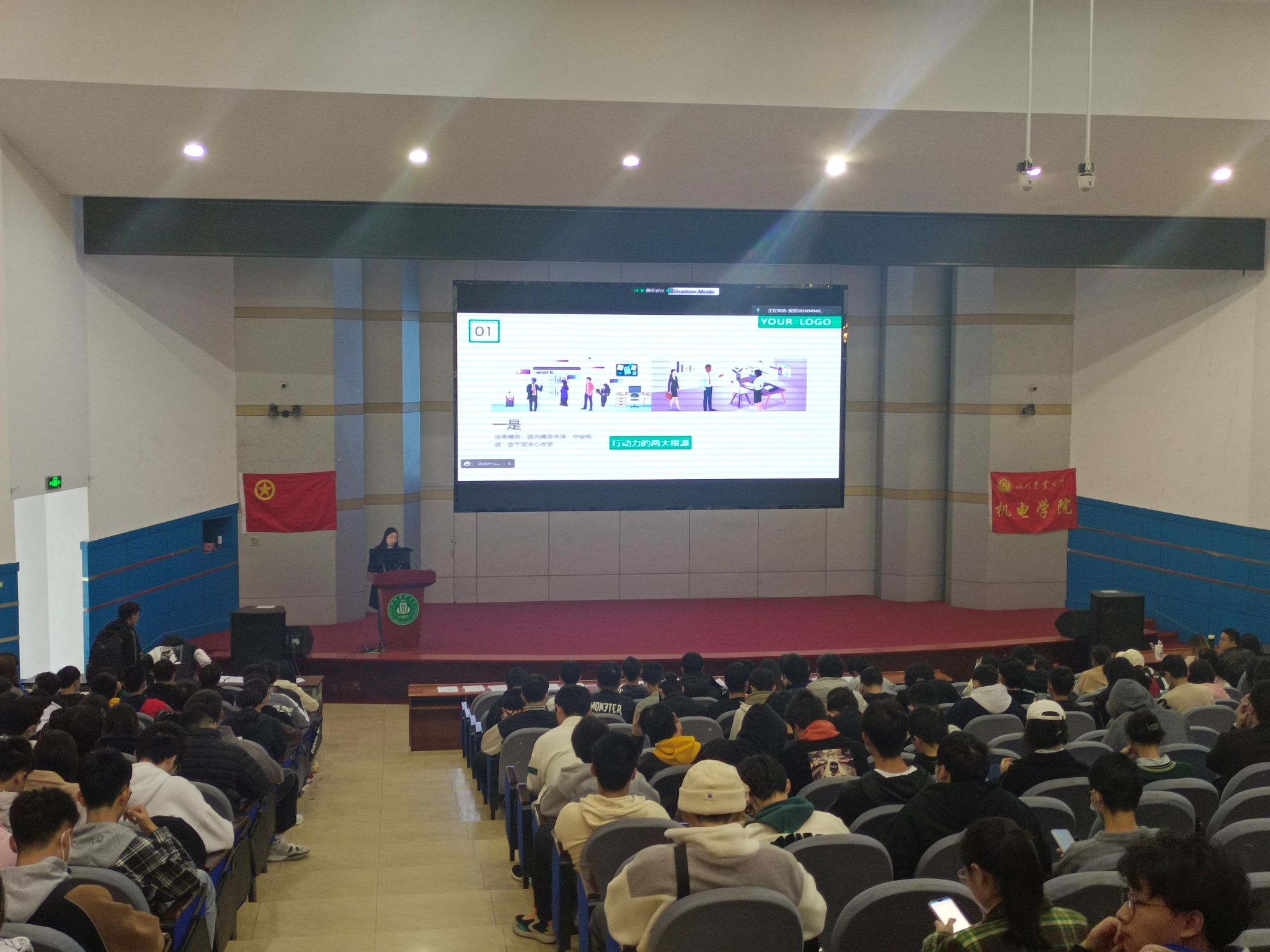 杨梅老师用一则“知行合一,以行促知,以行求知”的名言引出主题,从行动的必要性、个人行动、团队行动三个方面展开,通过多个实例与故事,生动地讲述了行动带给同学们的影响,并鼓励大家从个人行动的小事开始,配合着团队行动,一步一步要求自己,积累经验,用实践来突破自己。