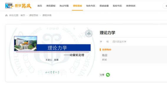 近日,由公司教师陈霖教授及其团队主讲的《理论力学》上线新华网“新华思政——全国高校课程思政教学资源服务”平台,面向全社会开放及共享。