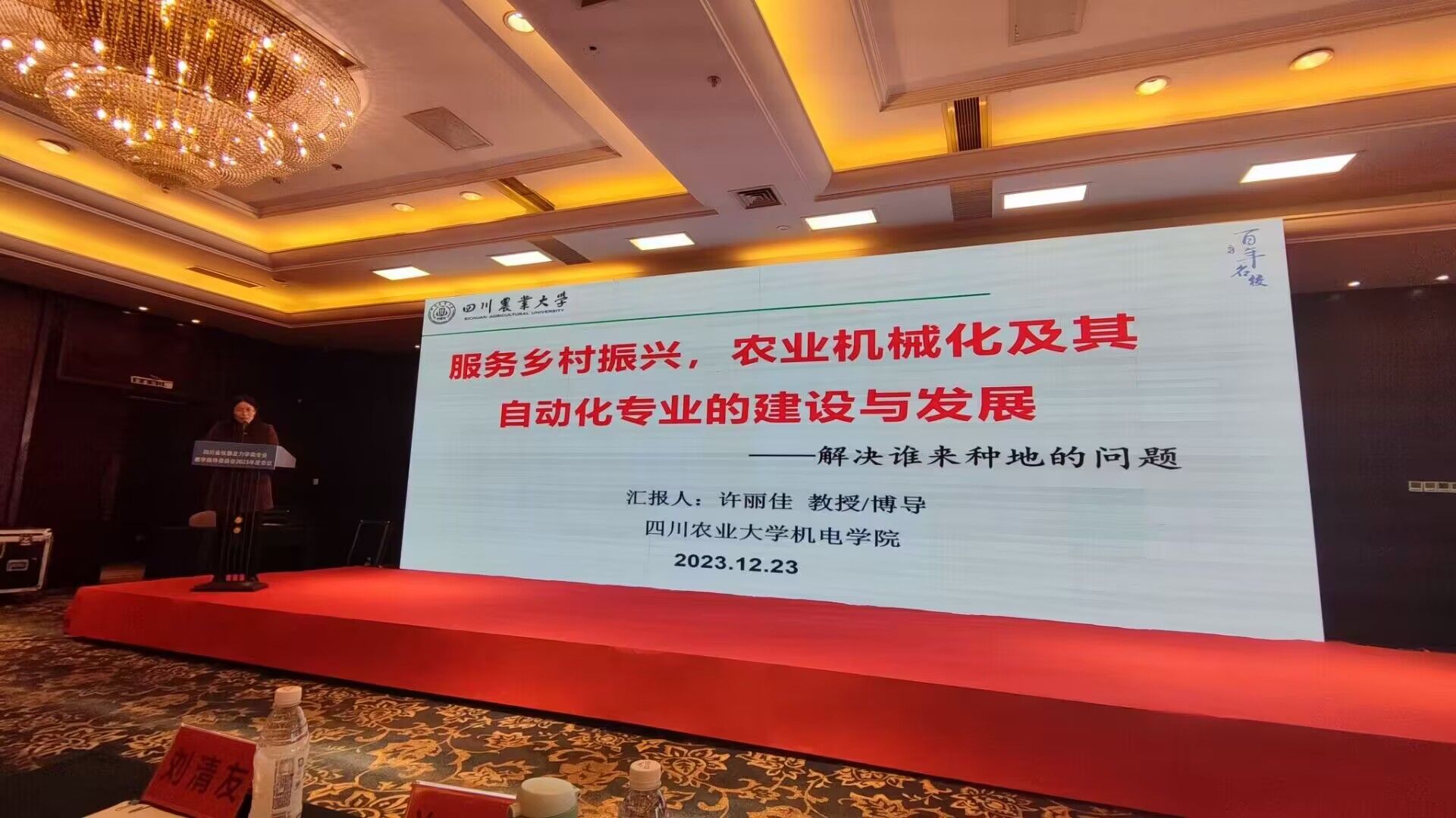 成都理工大学刘清友书记,成都大学王清远董事长,西南科技大学黄琦董事长等多名领导参会,公司经理许丽佳教授受邀以“服务乡村振兴,农业机械化及其自动化专业的建设与发展-----解决谁来种地的问题”为主题,展示了公司最新研发成果,宣传了公司农机专业。汇报内容引起了在场专家的极大兴趣。
