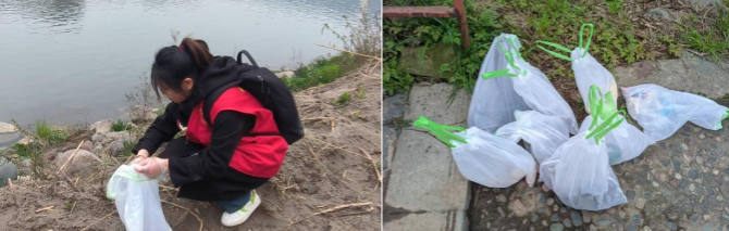 志愿者们分为两组。一组沿江岸、沙滩搜寻垃圾,并进行集中处理。长达两小时的搜寻,最终垃圾累计重达4kg,包括一次性餐盒、塑料瓶、塑料袋、塑料包装袋、各种渔网等。其中一名志愿者感叹道:“这是青衣江在哭泣啊!”