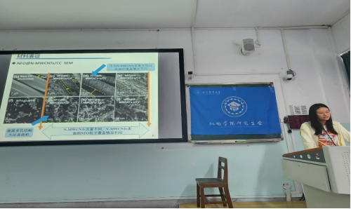 王楠同学的研究着眼于纳米材料的电磁波损耗优化,通过手性结构诱导四氧化三铁纳米颗粒实现空间螺旋分布,为纳米材料在电磁屏蔽、隐身技术等领域的创新应用提供了新思路。程欢同学则重点研究纳米管协助构建网络以检测多种重金属离子,使网络具有优异的吸附性和导电性。