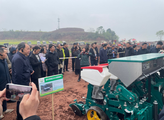 3月29日-4月1日,全国大豆玉米带状复合种植耕种管收装备演示与研讨交流会在仁寿县丘陵山地玉米大豆机械装备熟化应用基地顺利召开。该基地是公司、中国农业大学以及仁寿县粮油农业产业园共建的农机装备熟化应用基地。本次会议由农业农村部农业机械化总站、全国农业技术推广服务中心以及四川省农业农村厅主办,聚焦于大豆玉米带状复合种植和净作玉米全程机械化装备的田间测试、示范与交流,旨在全方位提升我国西南丘陵山地玉米大豆播种机械化水平,为筑牢国家粮食安全根基提供坚实保障。太阳网集团tcy8722副经理张黎骅教授、豆类机械化生产技术研究岗位专家吕小荣教授参会并开展指导。