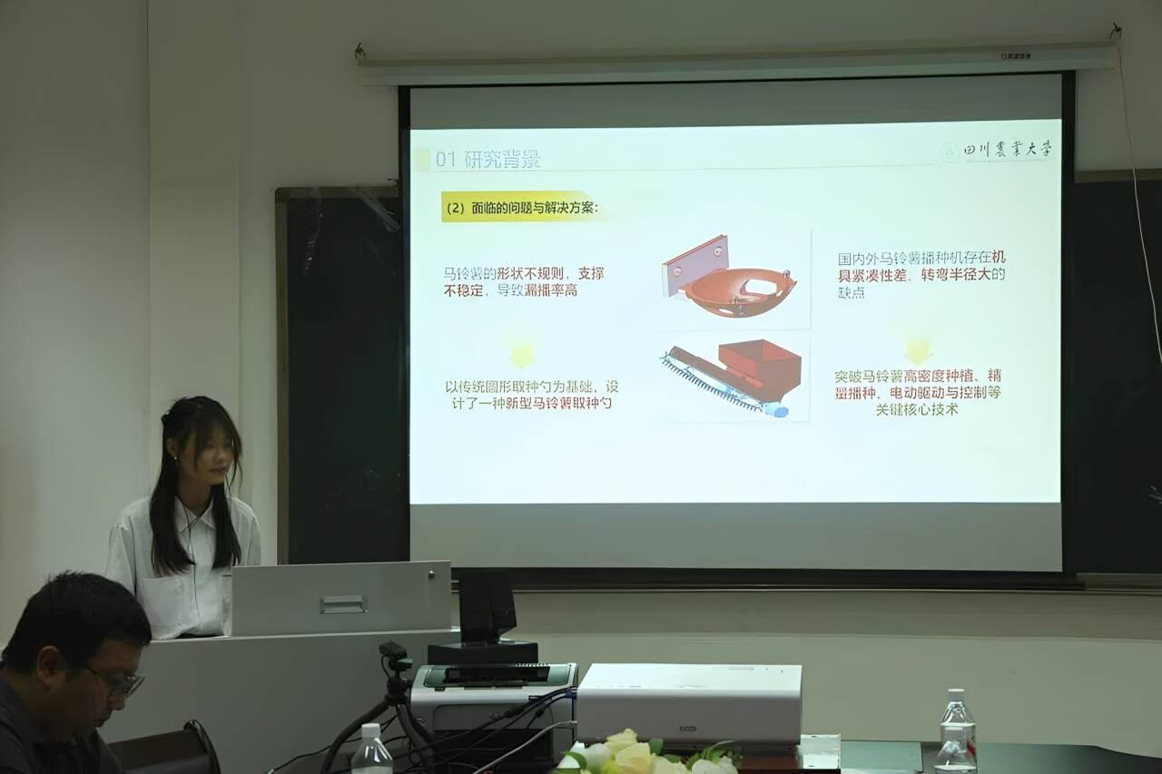 大赛一等奖得主——智采椒农队研发的柔性采摘红花椒机器人紧扣农业智能化发展方向,采用软体气动驱动技术与改进型 YOLO 深度学习算法,可在花椒园中实现高效、低损的自动化采摘,有效破解传统采摘中油囊易破损、作业效率低、人工成本高等痛点问题;尤其在应对不同大小的红花椒簇时,设备可实现自适应包络作业,切实保障采摘成功率与果实完整性。比赛中,该团队凭借娴熟的答辩表现与出色的成果展示,充分彰显了其在农业机械智能化领域的创新实力与应用潜力。