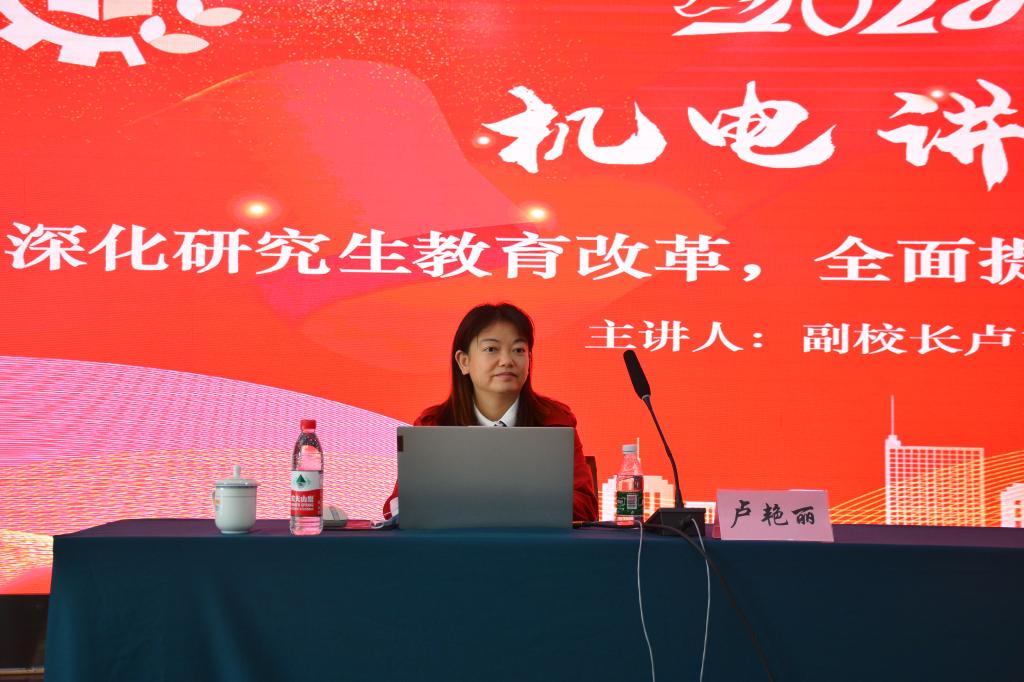为提升公司产品质量,推进“机电讲堂”开讲,4月21日,公司党委在雅安校区十教一楼学术报告厅组织专题报告会,副董事长卢艳丽教授作题为“深化研究生教育改革,全面提升研究生教育质量”的报告。报告会由公司经理许丽佳教授主持。公司部分教师和研究生参会。
