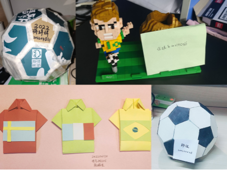 本次手工活动中,机电学院各年级的同学们踊跃参与,大家发挥丰富的想象,展现出工科员工出色的动手能力,创作出许多令人眼前一亮的作品。同学们边观看世界杯边创作手工作品,精雕细琢、用心打造自己的作品,立体形象的足球、形态可掬的加油者、款式多样的球服等均十分吸引眼球。