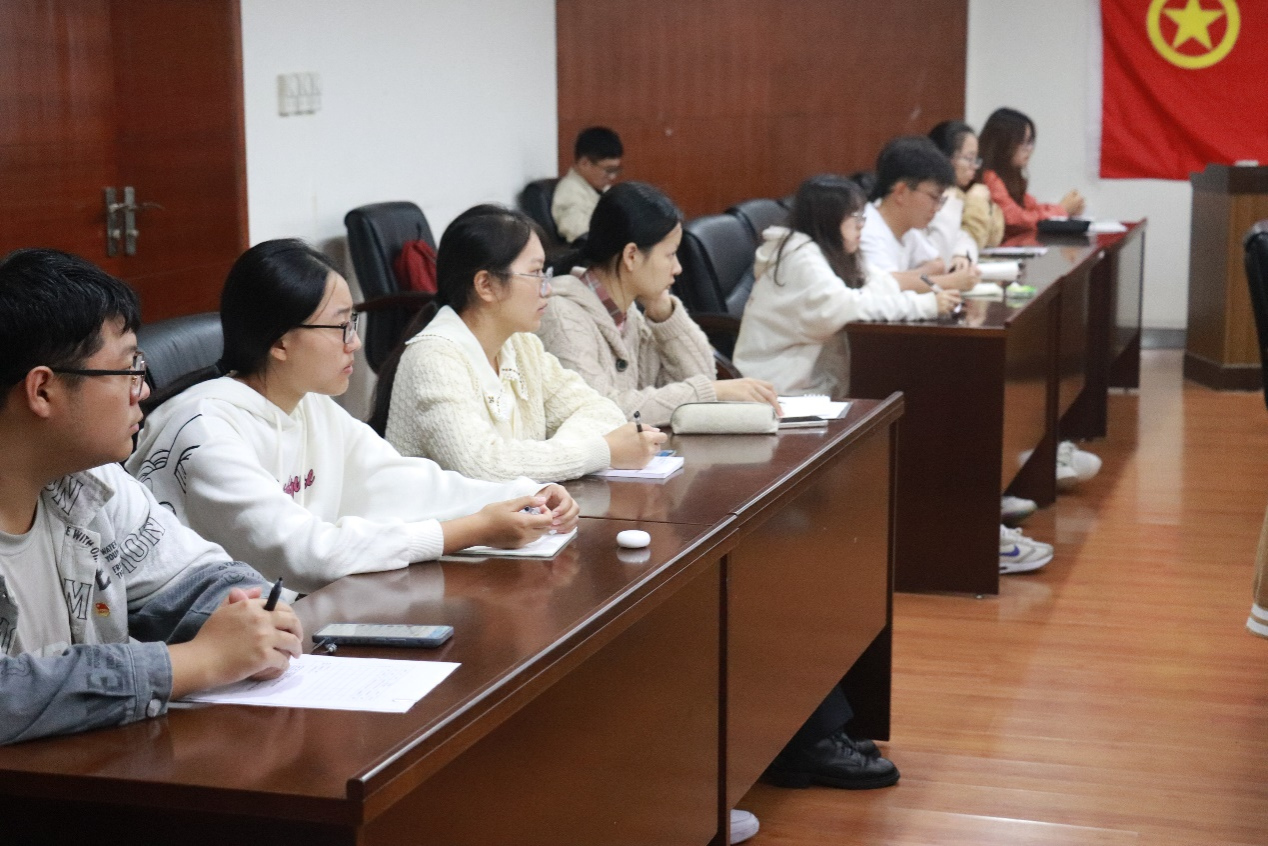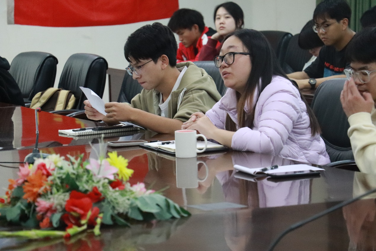 刘小棚动员大家积极参与《“红色12.9,梦想再出发——团员再教育”系列活动》并提醒大家智慧团建使用过程中常见的问题如何解决,周书玉向同学们解读了班团活动、团日活动和主题教育的区别,并带领大家学习了研究生支教团的相关文件,积极鼓励各班团支部开展班团活动,创新班团活动,动员团员青年进社区实践,发挥专业优势开展青春建功行动。