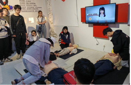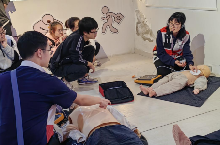 同学们于中午2:30准时到达场地,有序随工作人员前往教学培训地点进行学习。工作人员通过道具和视频对各种突发情况和急救仪器进行讲解,用词严谨,语言风趣,鼓励同学们积极投身到实践当中。同学们对于心脏复苏,人工呼吸等急救措施及起搏器的使用有了进一步认识。