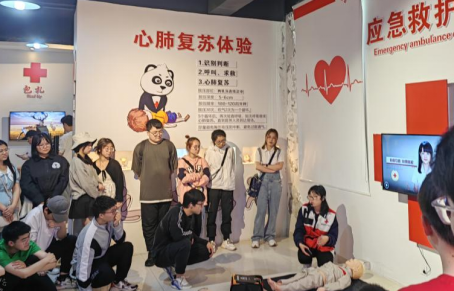 培训结束后,同学们自主对场地进行参观,雅安市红十字会生命健康安全体验馆设立了地震灾难照片墙、VR地震体验、模拟灭火装置、行车装置等多种趣味教学设施,同学们在参观体验的过程中了解到了灾害的危险性,并通过器材设施的教学引导学会了呼救、急救、防护,提升了自我保护意识。