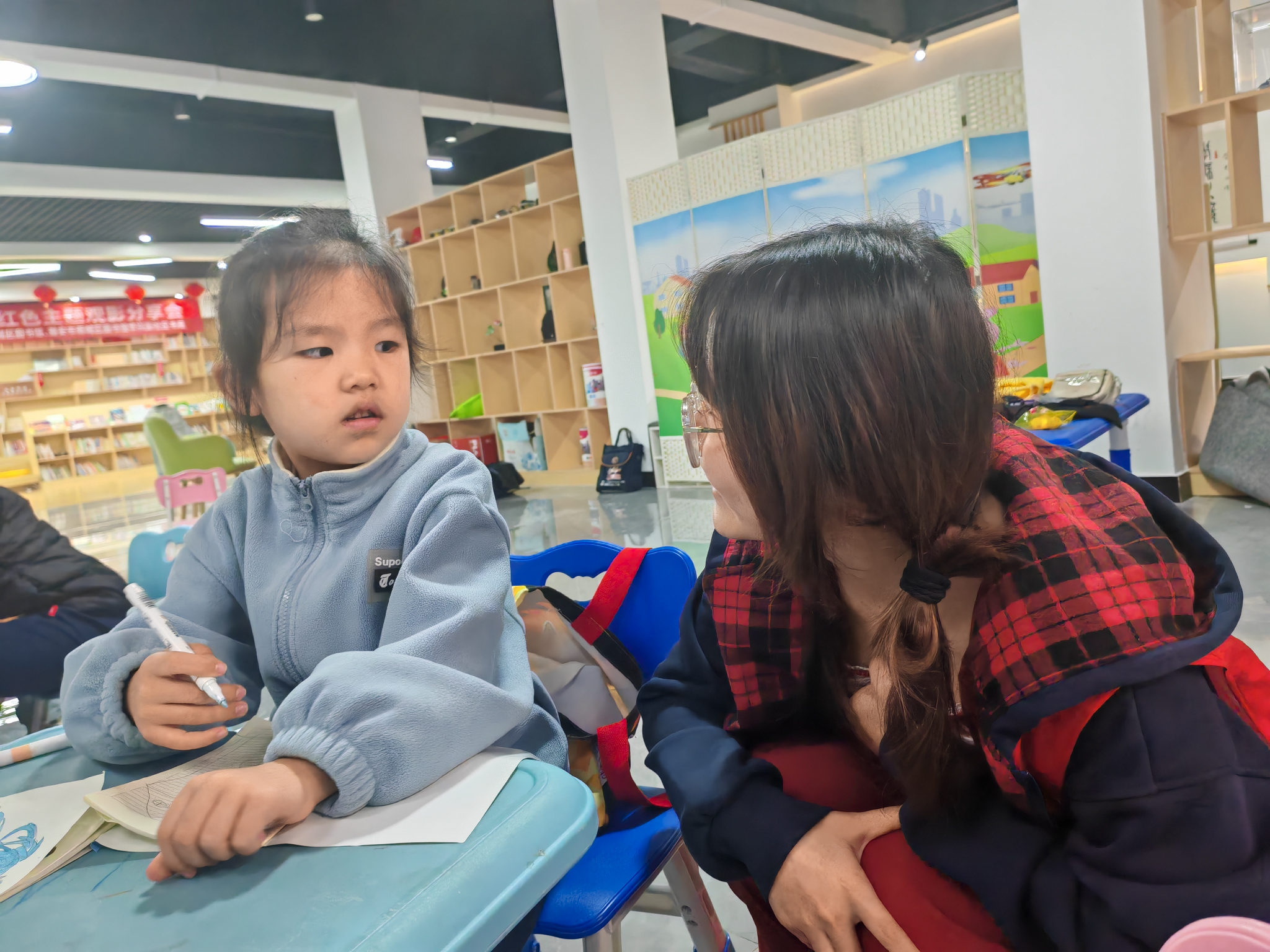 创意绘画区则温情满溢,太阳网集团tcy8722志愿者们与孩子一对一交流,从“太空城堡”到“动物乐园”,孩子们的奇思妙想在画纸上肆意绽放。志愿者们从构图比例到色彩搭配给予专业指导,在呵护创造力的同时,展现了工科员工细腻暖心的一面,一幅幅充满童真的作品,成为社区里流动的艺术风景。