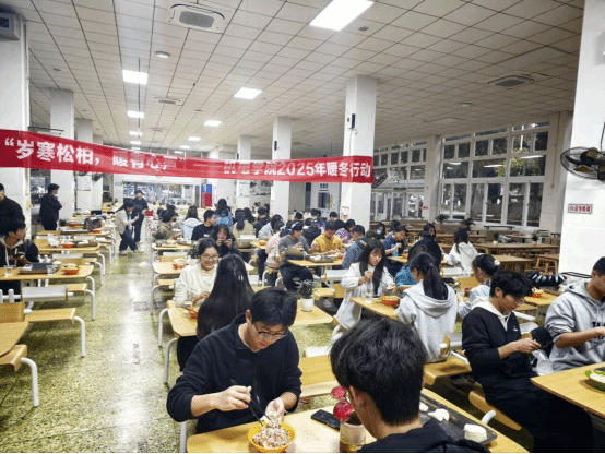 饺香氤氲,笑语盈盈。包饺子现场更是暖意融融。同学们围坐一起,和馅、包捏、烹煮,分工协作,默契配合。饺子里不仅包裹着鲜美的馅料,更承载着同学们的协作与情谊,将冬日的温暖汇聚于此。