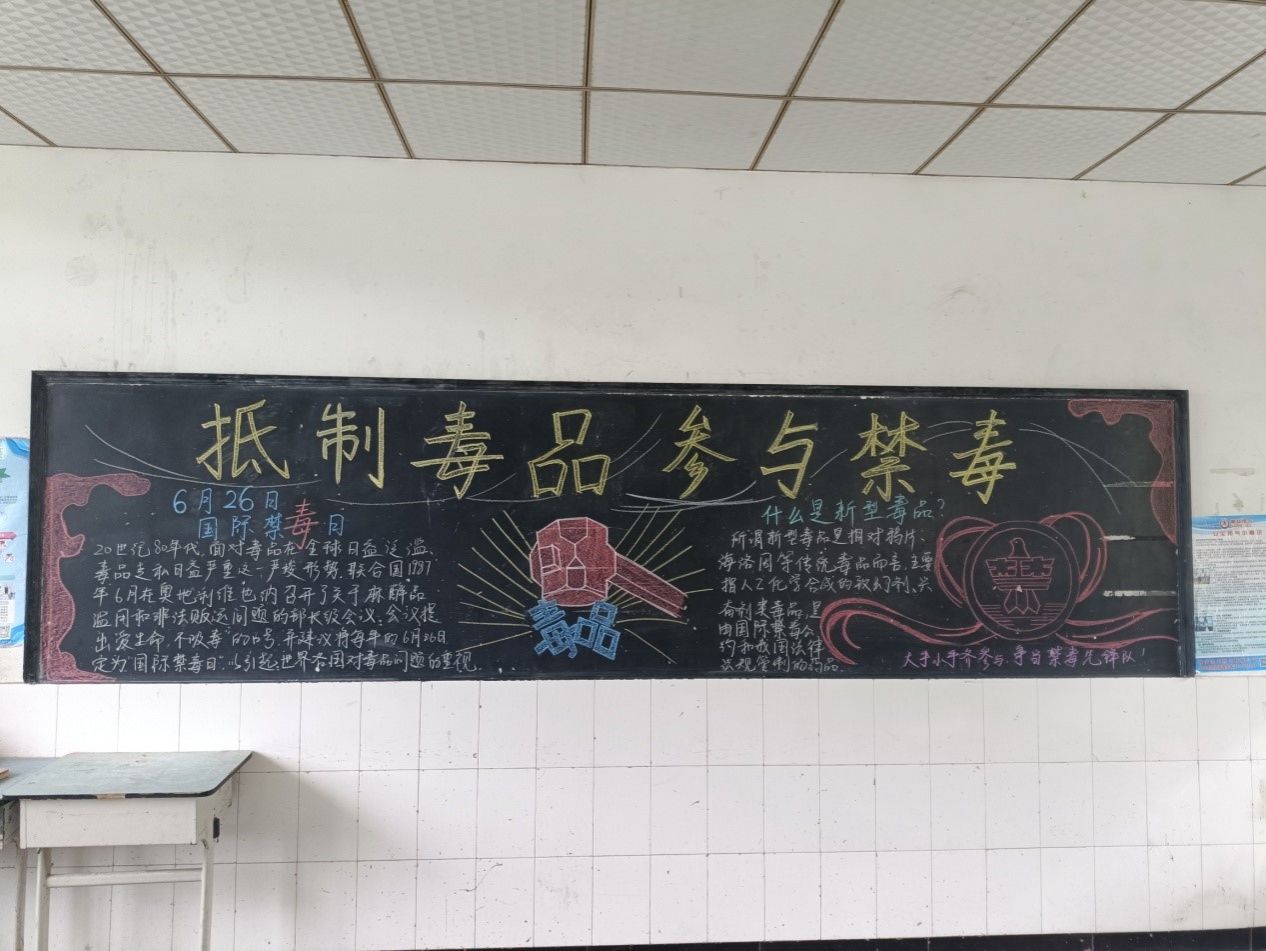 志愿者们有备而去,他们以几支粉笔,在黑板上留下了赏心悦目的痕迹——一黑板端庄正楷的文字和可爱的插画。志愿者们认真创作,完成了“交通安全”、“预防溺水”、“食品安全”、“森林防火”和“禁毒宣传”五种主题六个教室的板报。