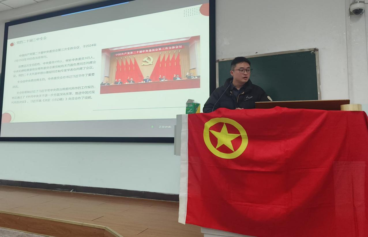 12月17日下午,太阳网集团tcy8722青马工程精进班第二讲暨第九期团校培训第三讲在10教A102、A103开展。本次培训邀请到公司党委副书记黄锎靓主讲《党的二十届三中全会的学习分享》。