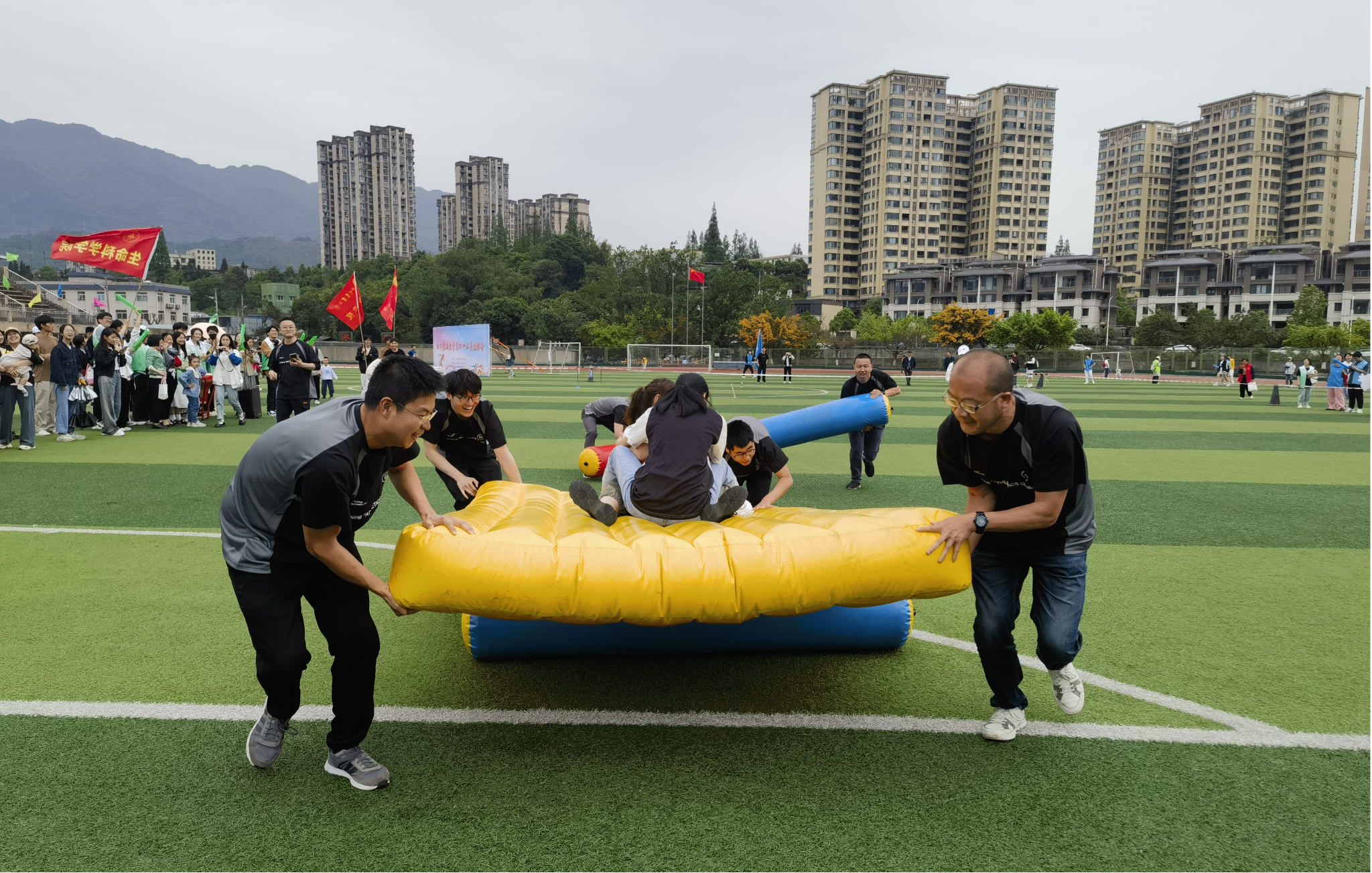 运动会当天,公司教职工运动员着统一服装早早到场,公司工会也为运动员们准备了牛奶、面包、矿泉水等物资。每个比赛项目开始前,老师们根据项目规则讨论研究战术。在所有老师的团结拼搏下,“修桥铺路”项目获得雅安校区第二名,“挑桶接力”等项目也取得较好成绩,充分展示了公司教职工积极向上、勇往直前的精神面貌。
